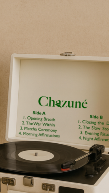Transform your mornings and evenings into a ritual of calm with The Chazuné Vinyl. This limited edition collector’s record invites you to slow down, guiding you through breathwork, affirmations, storytelling, and the mindful act of preparing your Chazuné.
